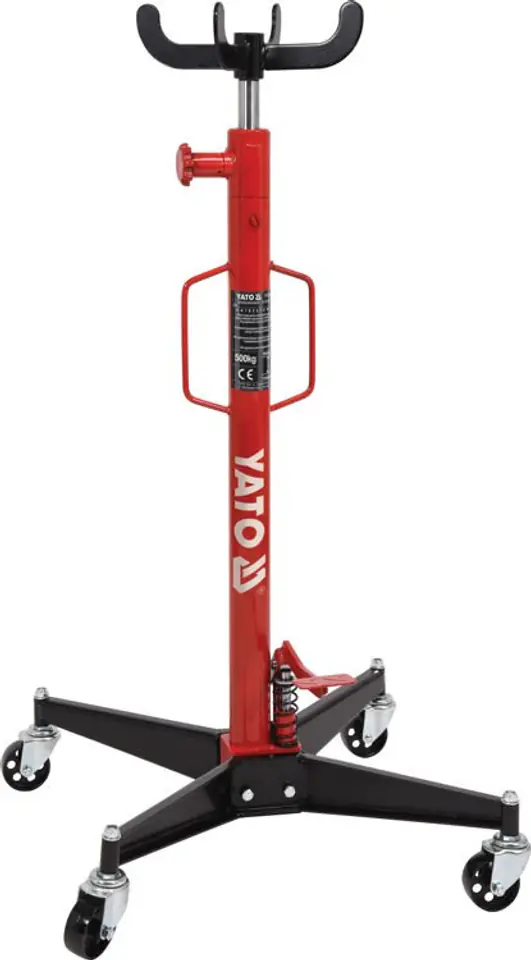 Hydraulic lift equipped with a foot pump and a precision valve. Designed to work with gearbox, exhaust pipes, engine, suspension, etc. in passenger cars.