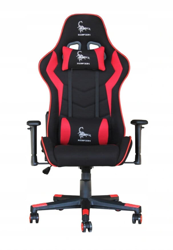 Gembird GC-SCORPION-02X Gaming chair "SCORPION", black and red, fabric armchair with red eco-leather accents
