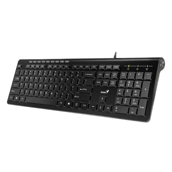 The Genius Slimstar 230 is a full-size office keyboard with a low profile and key travel and an attractive modern design.