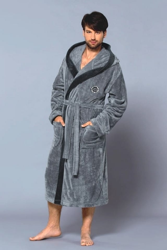 Ciekawy, gładki szlafrok z kapturem. Dobrze leży, jest wiązany w pasie, na biodrach ma dwie kieszenie. Lamówka w kontrastowym kolorze, nadaje mu ciekawego charakteru. U góry naszywka. Produkt polski, wysoka jakość. Skład: 100% poliester.