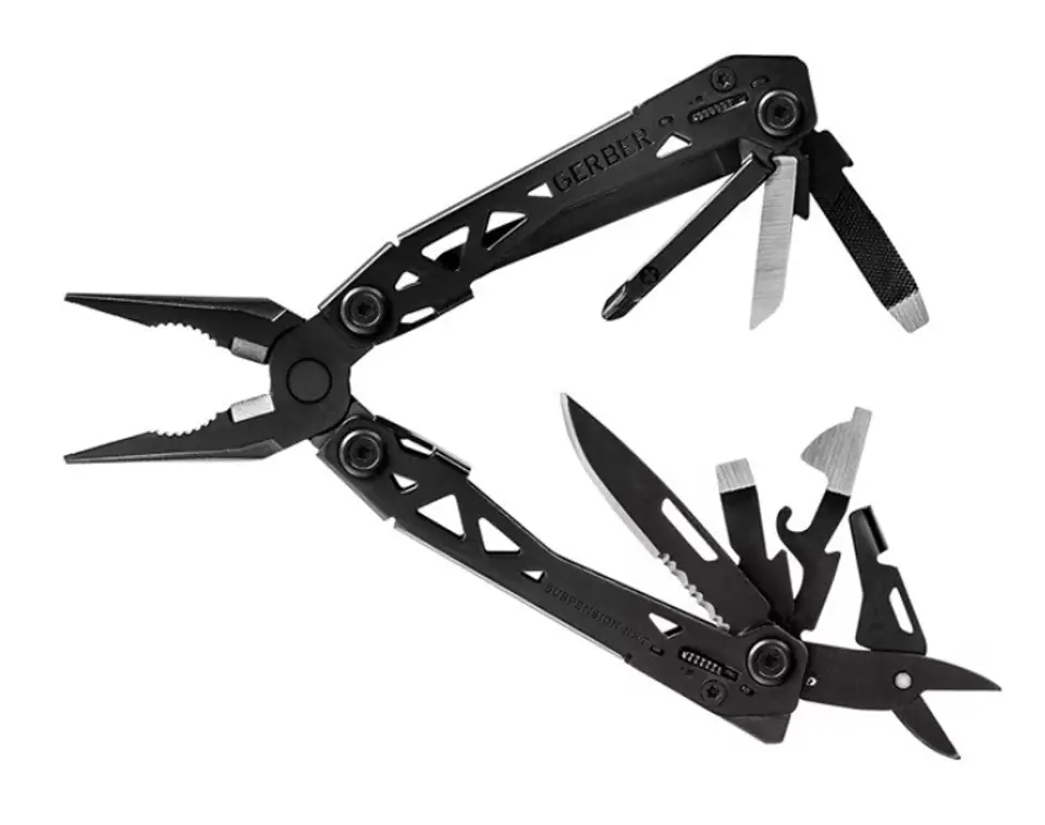 | Built-in tools: | File, Flathead screwdriver - 3 sizes, Phillips screwdriver, Spring-loaded pliers, Wire cutter, Scissors, Insulation stripper, Bottle opener, Serrated blade, Awl , Pliers, Can opener, Ruler |