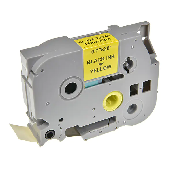 Compatible tape Neutral pack RL-BR-TZ641P-BK/YE equivalent to Brother TZ-641. G&G is the highest quality alternative material manufactured with great care to guarantee the best quality of your prints. The cassette is brand new, not reconditioned. The tape is dedicated for the following devices: Brother PT18R, PT300, PT-300B, PT310, PT-310B, PT320, PT340, ST1150, ST1150DX, PT1300, PT1700, PT1750, PT1760, PT1800, PT1810, PT1830, PT1830C, PT1830SC, PT1830VP, PT1880, PT1900, PT1910, PT1950, PT1960, PT1960 2030, PT2030AD, PT2030VP, PT2100, PT2110, ST5, PT330, PT350, PT520, PT540, PT580C, PT1400, PT1500PC, PT1600, PT1650, PT2200, PT2210, PT2300, PT2310, PT2400, PT2410, PT2430PC, PT2500PC, PT2600, PT2610, PT2700, PT2710, PT2730, PT2730VP, PT7500, PT7600, PT530, PT550, PT3600, PT9200PC, PT9200DX, PT9400, PT9500PC, PT9600, PT9700PC, PT9800PCN, PT2420PC. The width of the tape is 18mm