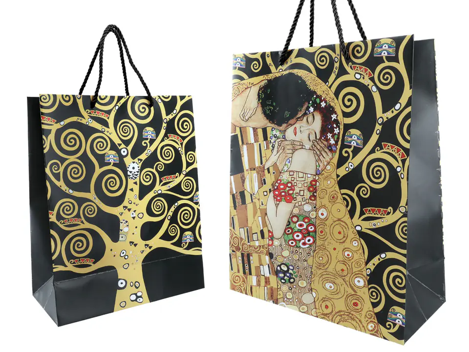 Elegant gift bag, with a motif of the work of the famous painter Gustav Klimt. Perfect for any occasion.