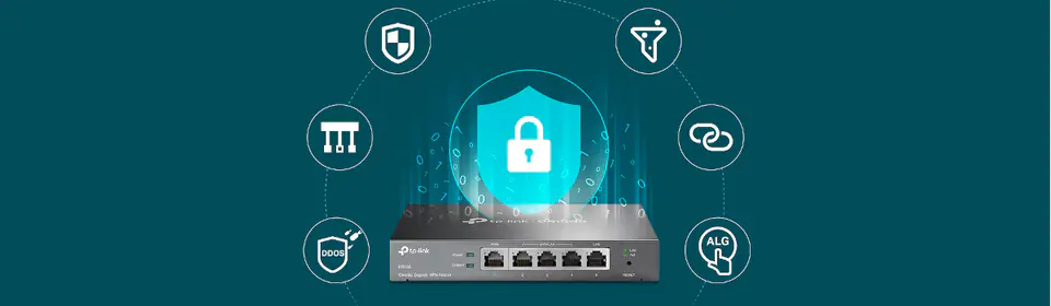 TL-R605 zapewnia obsługę IPSec/PPTP/L2TP VPN w oparciu o protokoły IPSec/SSL. Dzięki rozbudowanym możliwościom sprzętowym router ma zdolność obsługi do 20 połączeń LAN-to-LAN IPsec, 16 połączeń OpenVPN, 16 połączeń L2TP oraz 16 połączeń PPTP VPN. Uruchamiana automatycznie jednym kliknięciem funkcja IPSec VPN* znacznie ułatwia proces konfiguracji sieci VPN oraz upraszcza zarządzanie siecią, jednocześnie chroniąc i szyfrując prywatną, internetową wymianę danych pomiędzy oddziałami.