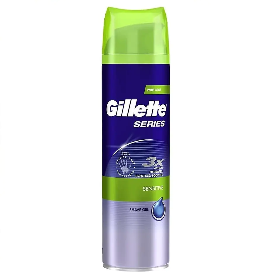 Superior shaving smoothness with Gillette Series Sensitive men's shaving gel. The triple-action formula with aloe vera soothes skin irritations, providing a feeling of coolness and comfort when shaving, moisturizes and helps protect the skin from irritation.