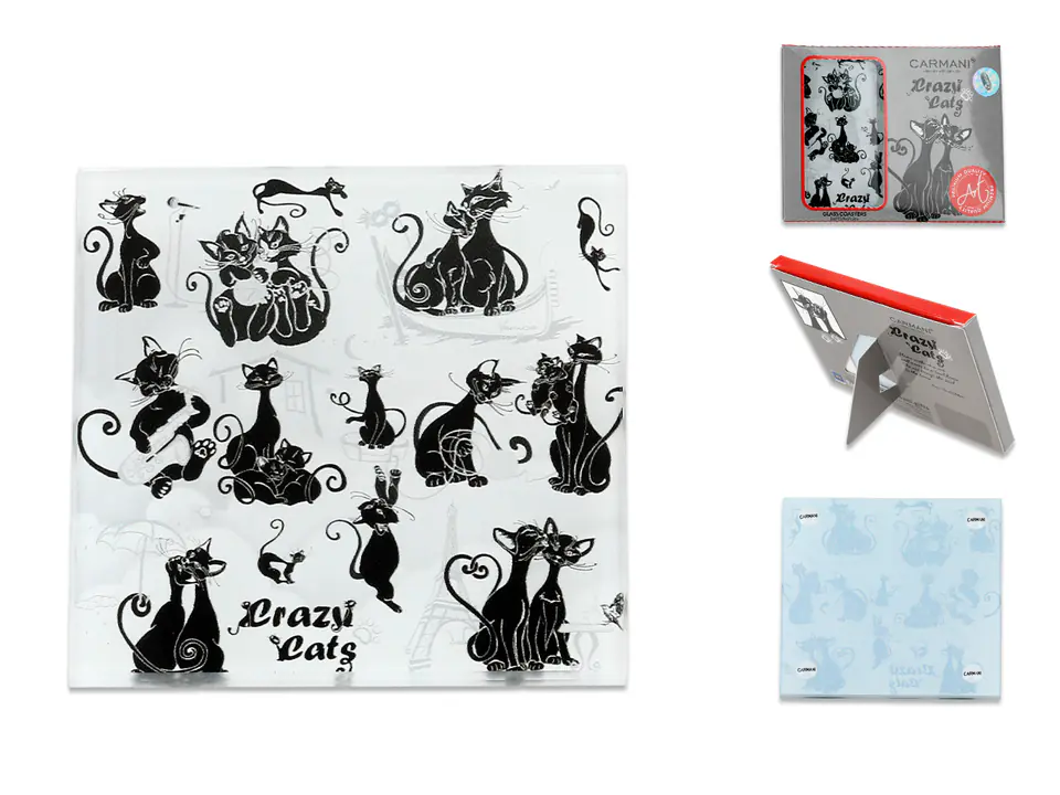 Tasteful, square cup pad with a cat motif. Made of glass, which makes it very easy to wash. Secured with silicone feet. Unique design and careful workmanship will make the pads emphasize the décor of any interior.