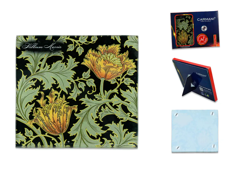 Tasteful, square cup pad with a painting motif. Made of glass, which makes it very easy to wash. Secured with silicone feet. Unique design and careful workmanship will make the pads emphasize the décor of any interior.