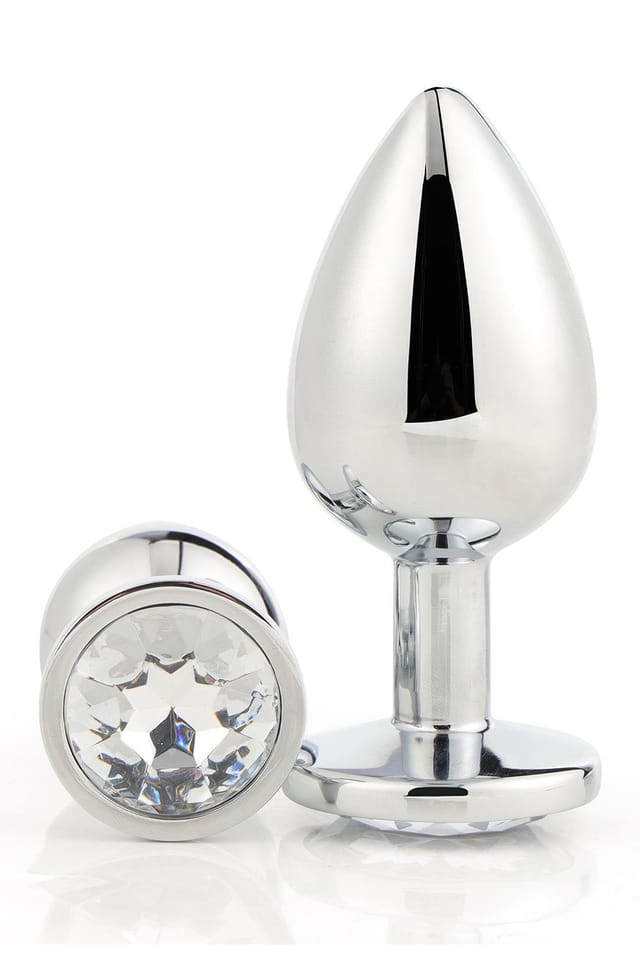 The Gleaming Love collection presents this Small sized shiny anal plug with gem stone. Made of smooth lightweight aluminium and seamless, this pleasure toy is easy to glide and the flared base ensures a sense of security while keeping the jewel sitting comfortably between the butt cheeks.This jewelled plug is beautifully decorated with a delicate round gem stone. From tip to base the seamless anal plug features a glimmering sheen that pairs wonderfully with the sparkle of the matching gem stone. The tapered bulb shape of the plug combines ease of use with erotic backdoor pleasure. The Gleaming Love plug can be heated or cooled in water before use to provide additional sensations.A storage bag made of soft velvety fabric that closes with a drawstring is included. Small plug:length 7,1 cmdiameter 2,7 cm