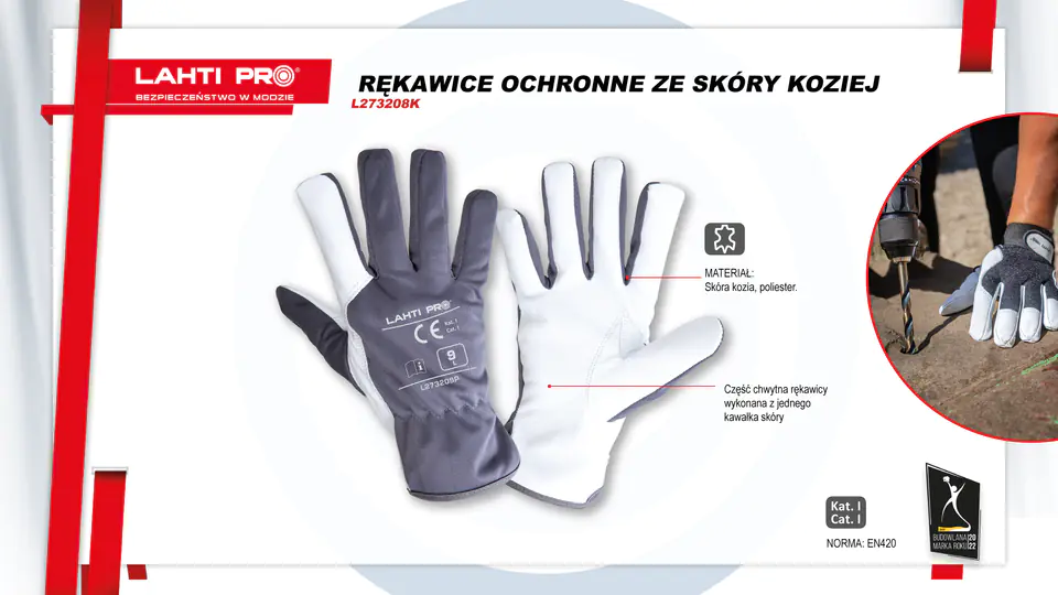 GLOVES GOAT LEATHER GREY L273210P, CARD, "10", CE, LAHTI