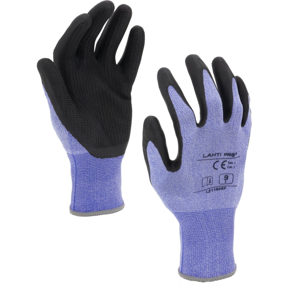 GLOVES LATEX BLACK-BLUE L211611P, CARD, "11", CE, LAHTI