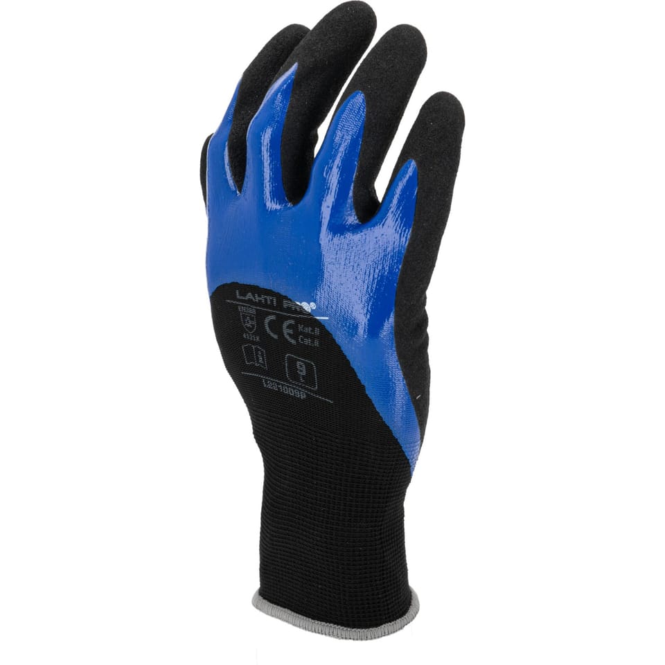 - Nitrile coating with a special texture increases comfort of work with slippery objects