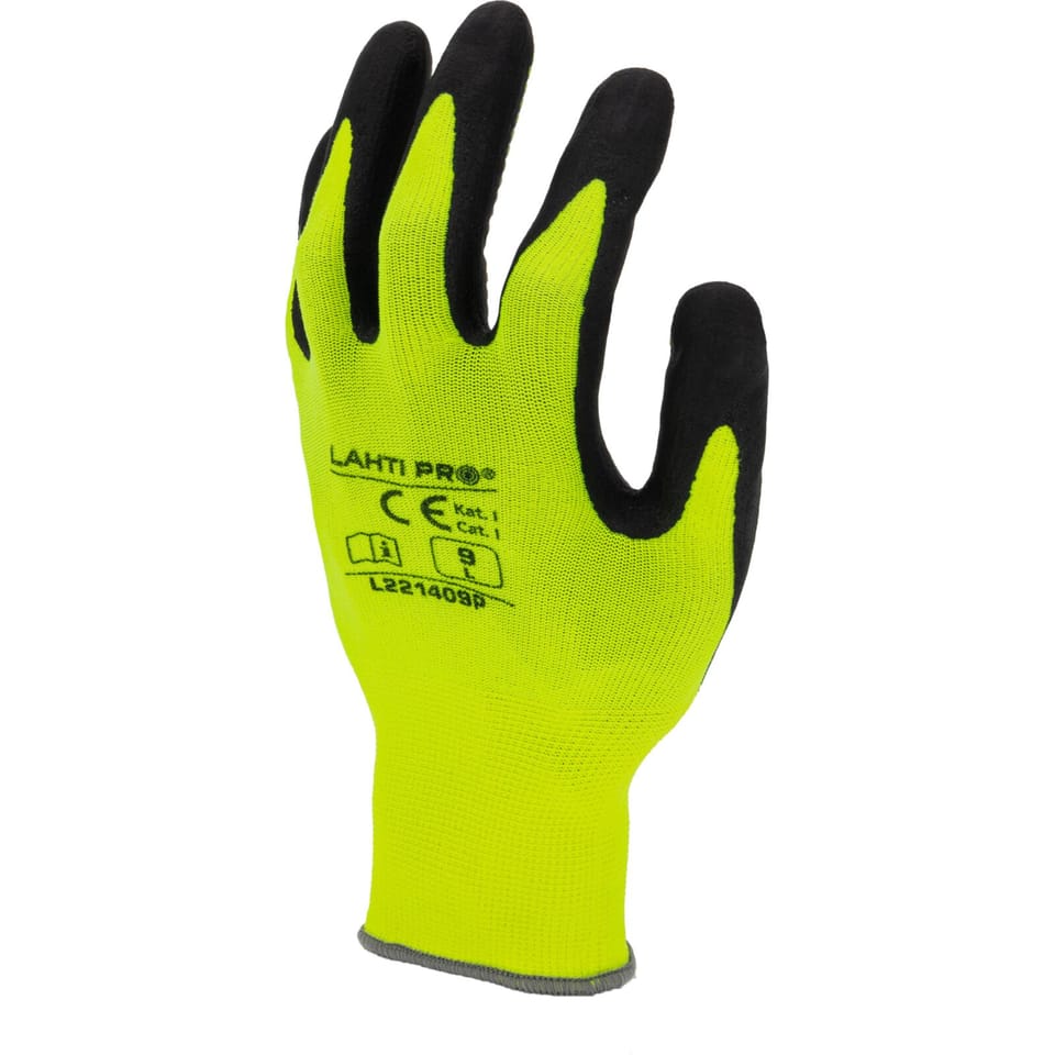 GLOVES NITRILE YELLOW-BLACK L221411P, CARD, "11", CE, LAHTI
