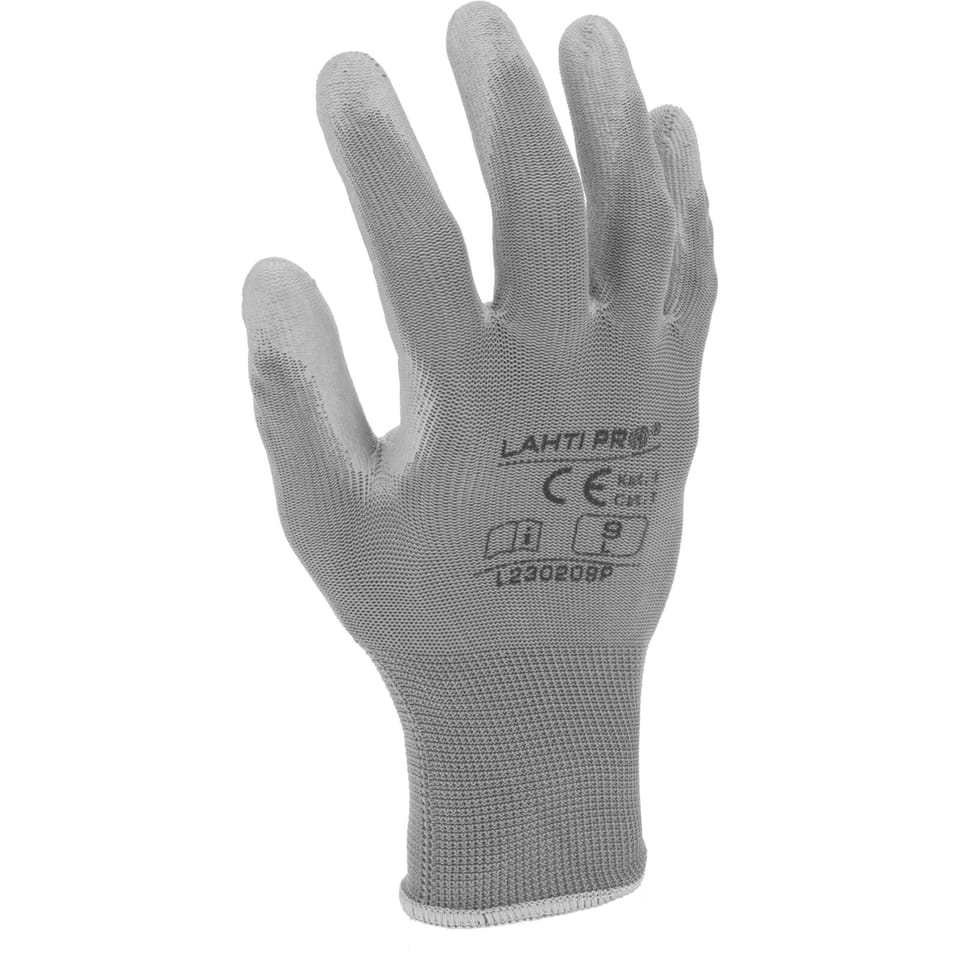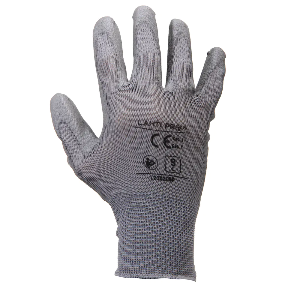 GLOVES PU GREY L230209P, 12 PAIRS, "9", CE, LAHTI