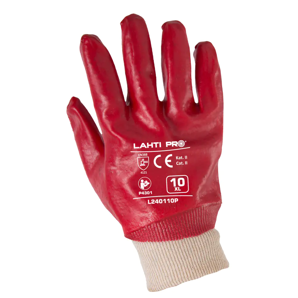 GLOVES PVC RED L240109P, 12 PAIRS, "9", CE, LAHTI