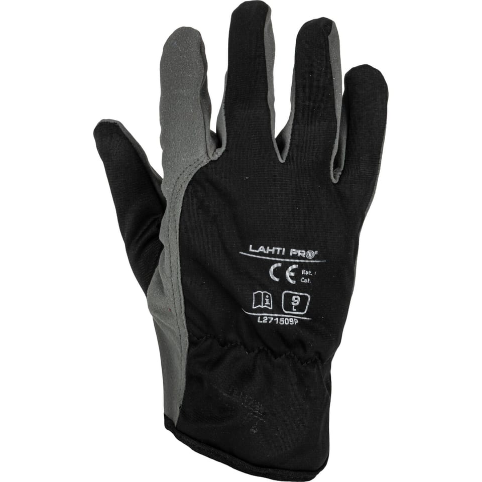 GLOVES SYNT. LEATH. GREY-BLACK L271510P, CARD, "10",CE,LAHTI