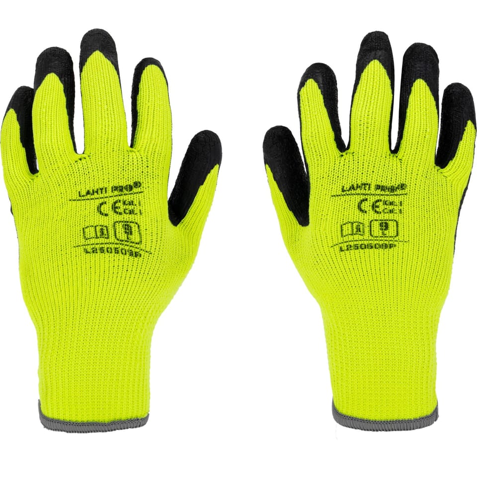 GLOVES WINTER YELLOW POLY. L250509P, 12 PAIRS, "9", CE,LAHTI