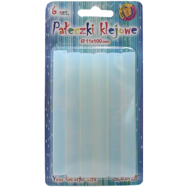 Glue sticks. Size 11 x 100mm. 6pcs per blister. Transparent
