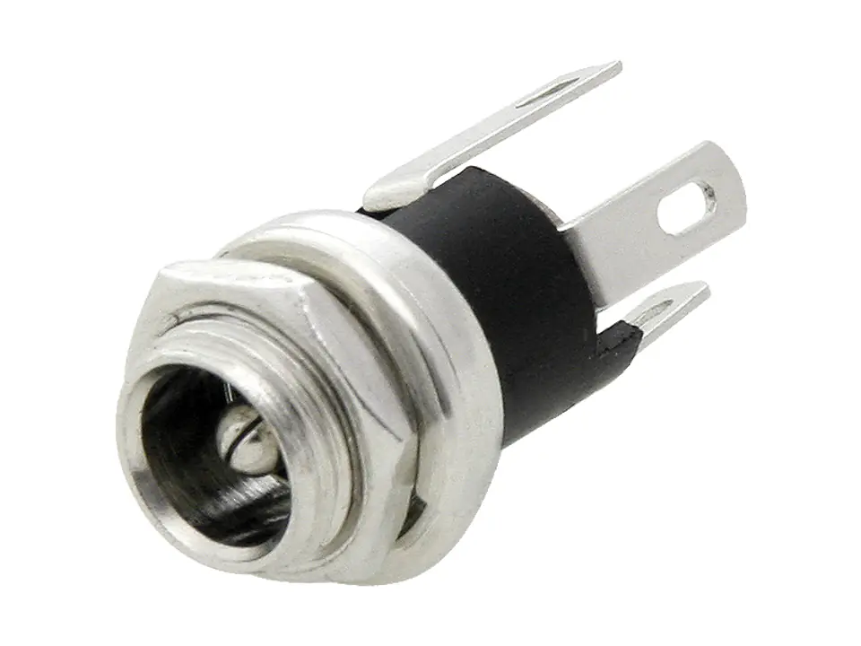Metal DC 2.5/5.5 screw-on jack with flat contacts.