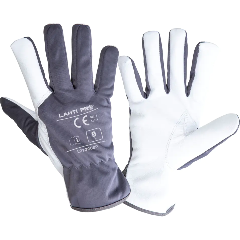 Goatskin gloves. grey L273209P, card, "9", CE, Lahti
