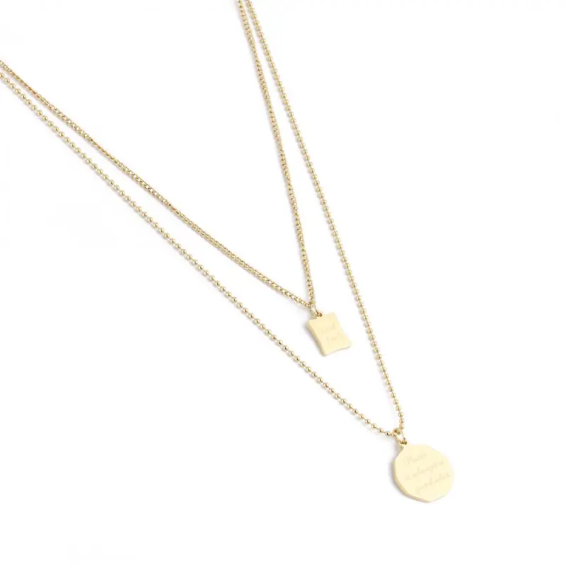 Fashionable gold-plated surgical steel necklace New collection of stainless steel jewelry clad with 14 carat goldGood fits elegant as well as everyday stylizations. An elegant accessory for every occasion, for dresses, sweaters and blouses. DIMENSIONS- length of a shorter chain: 40.5 cm- length of a longer chain: 47.5 cm- adjustment length: 5 cm SURGICAL STEEL is resistant to weather conditions, does not corrode, does not rust, does not darken! Manufacturer: XUPING
