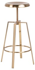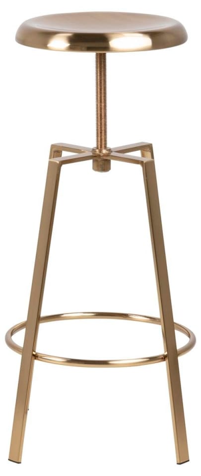 The Goose Bar Stool fits perfectly into a modern kitchen island, bar or pub. The seat of the stool is made of metal in gold color. Thanks to the use of this material, the stool is very durable and versatile. Stylish metal legs create an interesting combination with the seat. The seat is swivel and adjustable in height. The base of the stool is powder coated in gold. In addition, the legs were supported by a hoop placed at approx. 1/3 of their height. Stool weight: 7kg Number of pieces per carton: 1 Carton dimensions: 41cm x 69cm x 41cm
