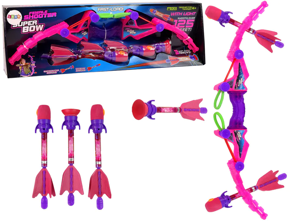 Gra Zręcznościowa Łuk Do Strzelania Dla Dzieci Różowy Świecące Strzały Gwizdek