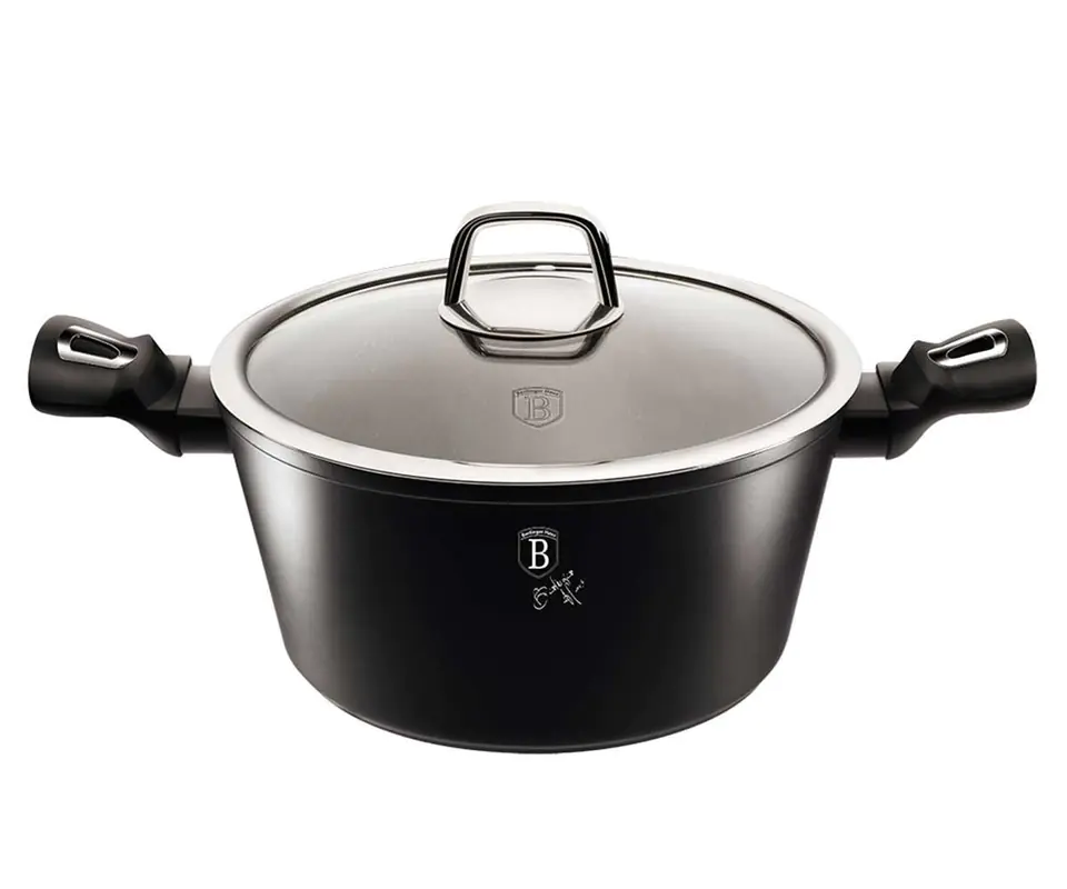 Berlinger HAUS dishes are made of high-quality forged aluminium coated inside with a triple granite coating (marble) with a very high hardness coefficient. The outer shell is available in several color versions with a characteristic metallic sheen. These attractive and fashionable dishes are equipped with SOFT TOUCH handles (silicone handle) as standard. Suitable for all types of cookers: gas, electric, ceramic, halogen, induction. The TURBO INDUCTION system (they heat up very quickly) can save up to 35% of energy.