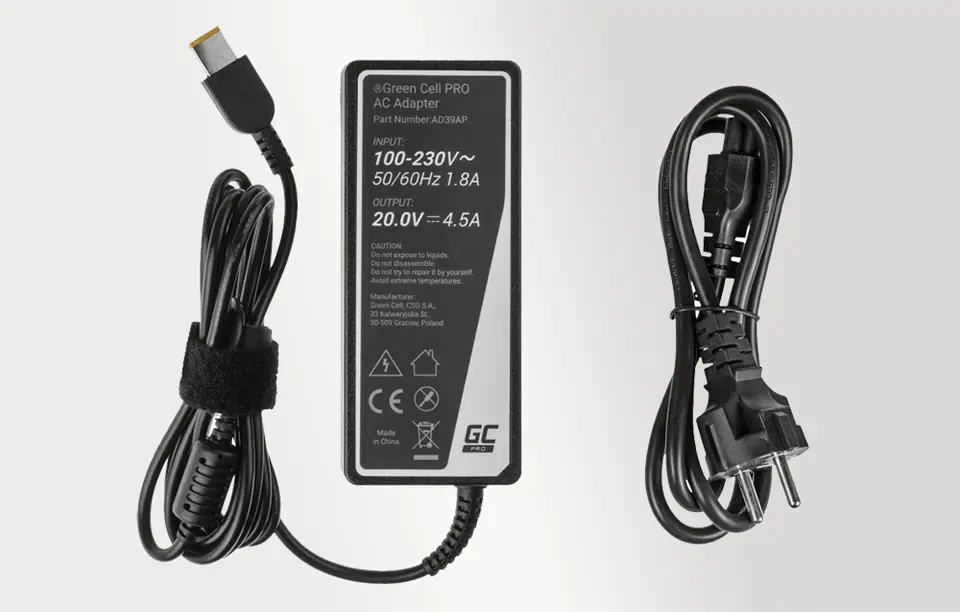 Zasilacz Ładowarka Green Cell PRO 20V 4.5A 90W do Lenovo G500s G505s G510 G510s Z500 Z510 Z710 Z51 Z51-70 ThinkPad X1 Carbon
