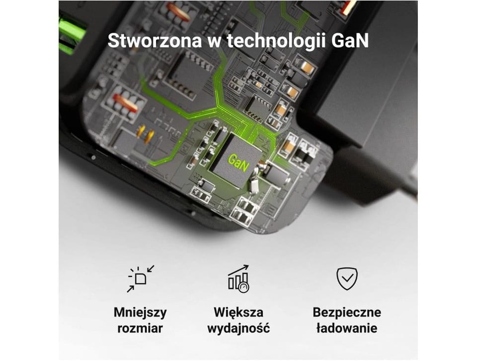 - Safe and ecological - GC PowerGaN is more ecological and safer than traditional chargers because it does not waste energy in the form of heat generated during charging thanks to the use of semiconductors (gallium nitride - GaN).