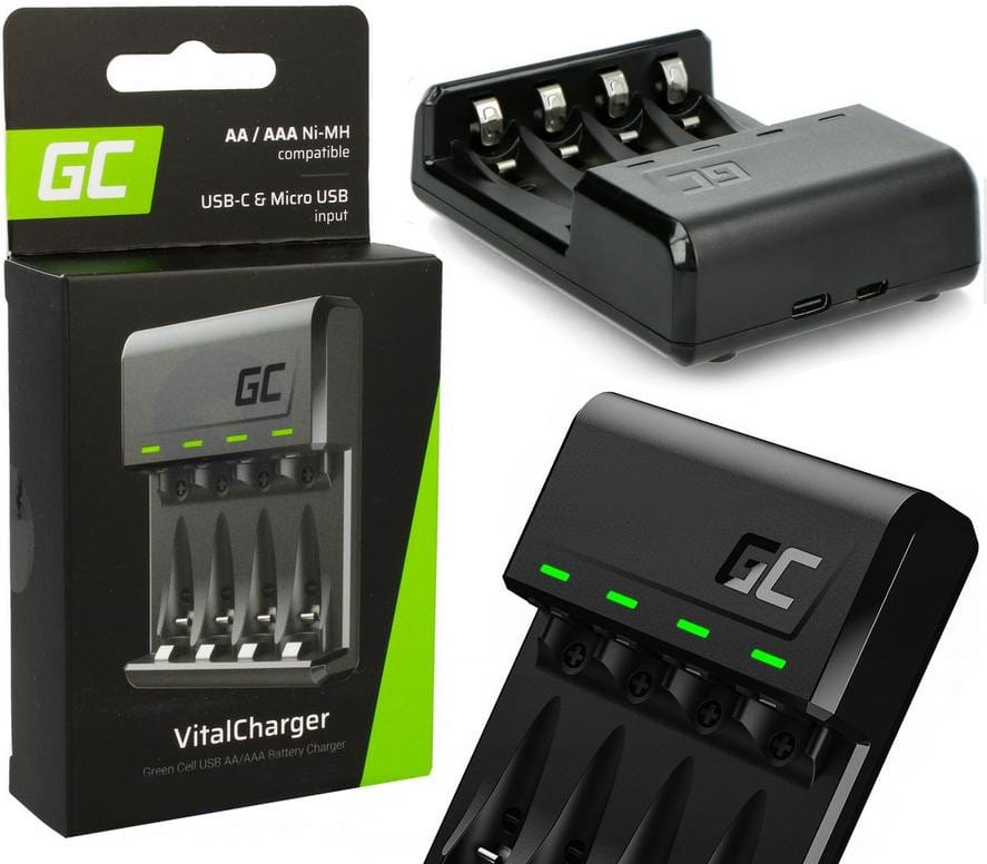 Ładowarka GC VitalCharger (USB-C / Micro USB) do akumulatorków AA / AAA - naładuj baterie gdziekolwiek jesteś poprzez port USB.