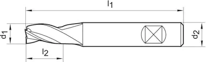 Application: for wedge and keyway milling and for universal machining. Compared to 2-blade milling cutters, the feed is approx. 50 % higher.