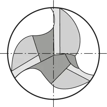 Application: for wedge and keyway milling and for universal machining. Compared to 2-blade milling cutters, the feed is approx. 50 % higher.