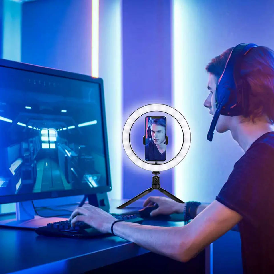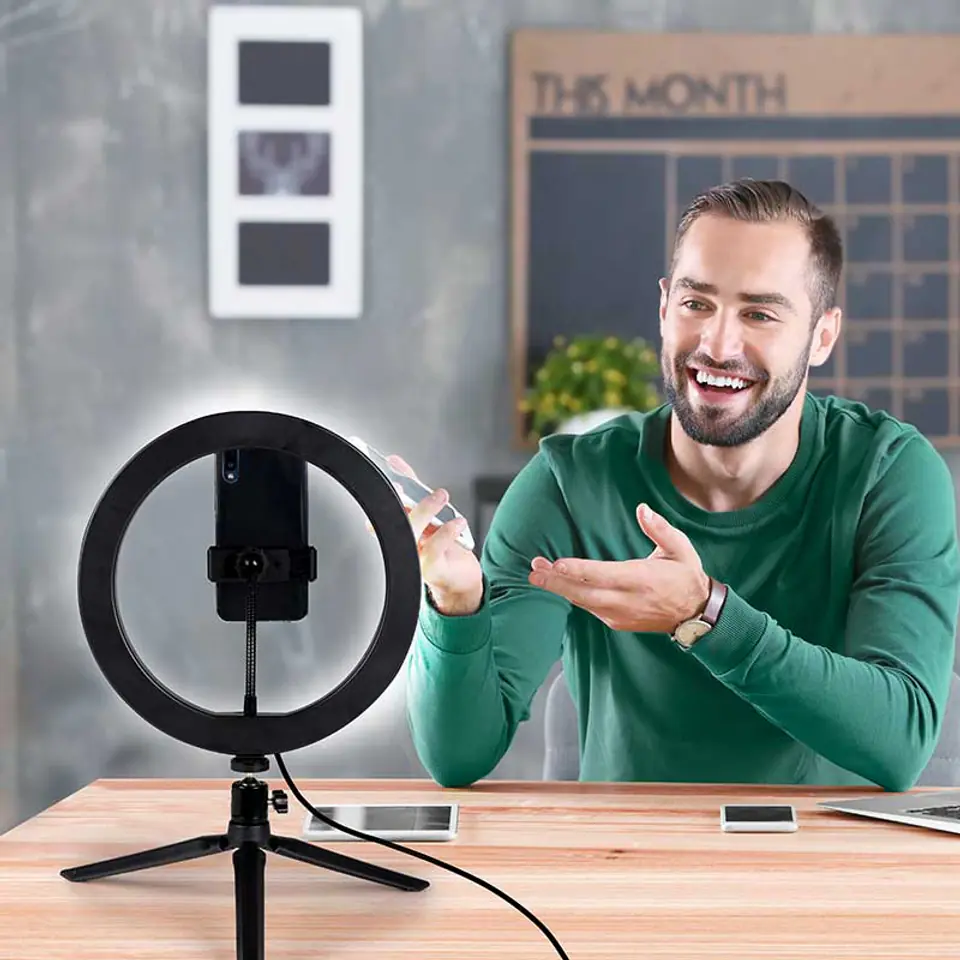 Mount your phone on the flexible neck in the middle of the ring lamp. Bend it any way you want to always get the best shot and the best angle. Turn it towards you or away from you, or set it at an angle.