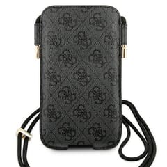 Guess 4G Big Metal Logo Pouch cross-body phone case. The product is characterized by one of the most well-known motifs used by Guess – the case is covered with 4G emblems, which are placed on a very pleasant to the touch saffiano texture. Large, gold Guess 4G logo in the middle of the case and additional smaller ones at the bottom. The combination of these elements makes the whole look very elegant.