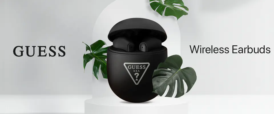 Ergonomic, wireless TWS Bluetooth headphones signed by the world-famous fashion house Guess.