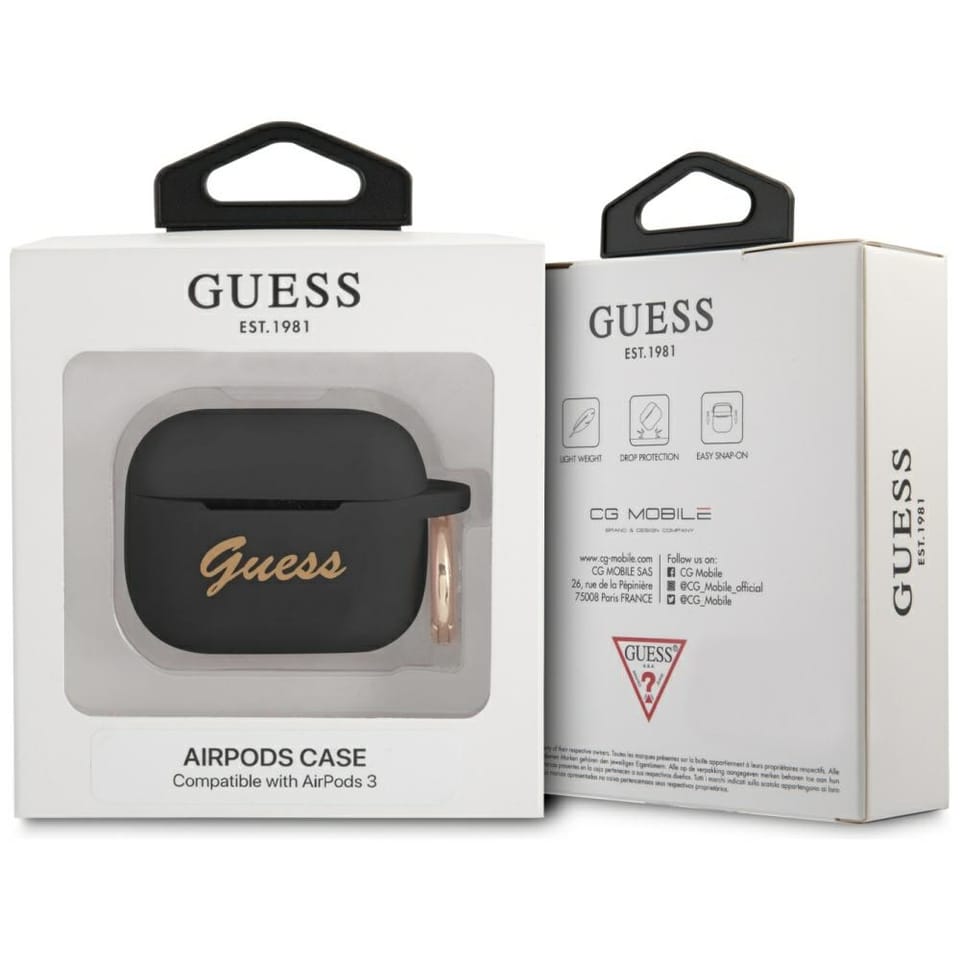 Guess GUA3SSSK AirPods 3 cover black/black Silicone Vintage Script