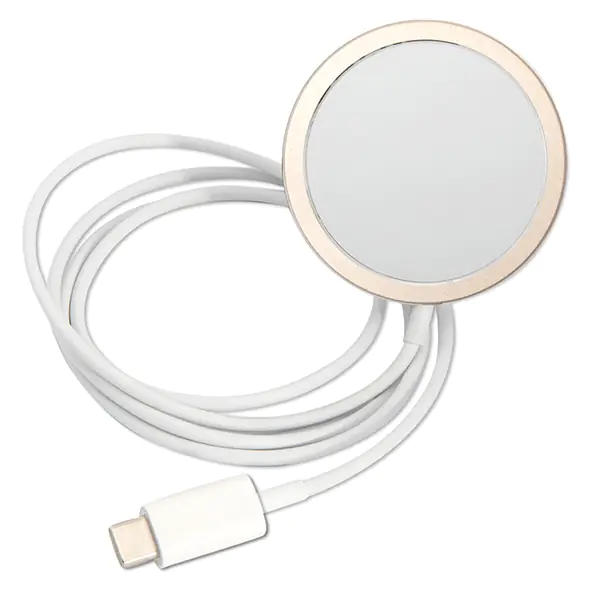 Stylish induction charger in gold color, allowing you to charge compatible smartphones without having to connect them to the charger. Thanks to perfectly matched magnets, it firmly adheres to the device, which accelerates the replenishment of energy. Simply place your device directly on the charger and your phone will automatically start charging.