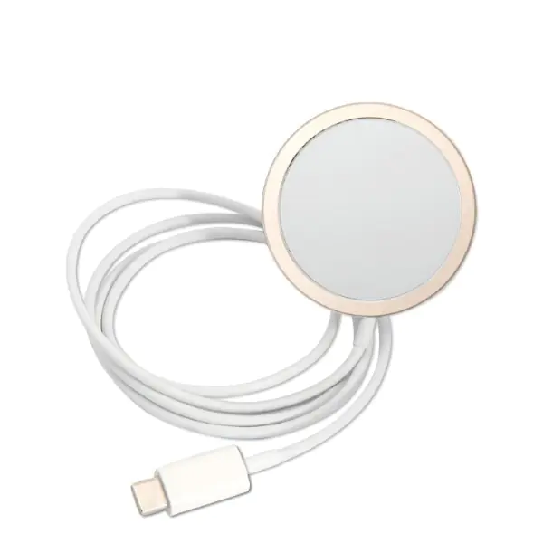 Stylish induction charger in gold color, allowing you to charge compatible smartphones without having to connect them to the charger. Thanks to perfectly matched magnets, it firmly adheres to the device, which accelerates the replenishment of energy. Simply place your device directly on the charger and your phone will automatically start charging.