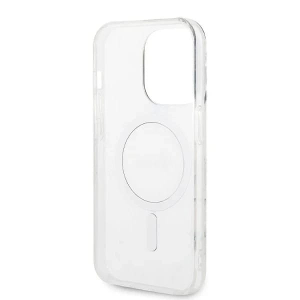 Unusual visual effects are provided by gold accessories in the form of a frame around the camera and the emblem of the Guess fashion house. Thanks to the use of gold accessories, the case acquires a warmer character. For the best convenience of the user, the case has been equipped with a magnetic ring compatible with MagSafe technology for fast, wireless charging.