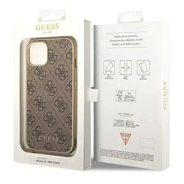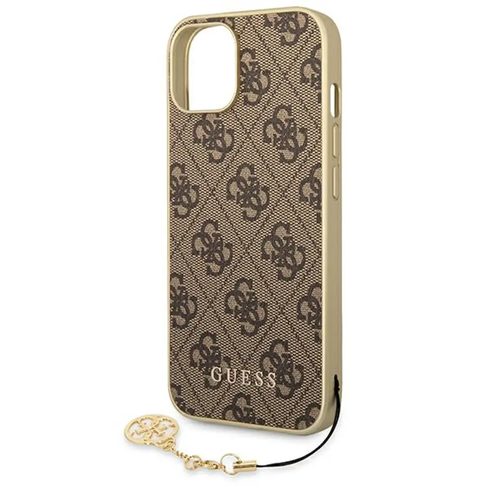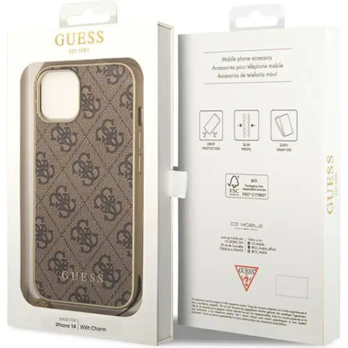 The chic Guess case from the 4G Charms collection features an elegant, recognizable 4G design signed with the gold GUESS logo.