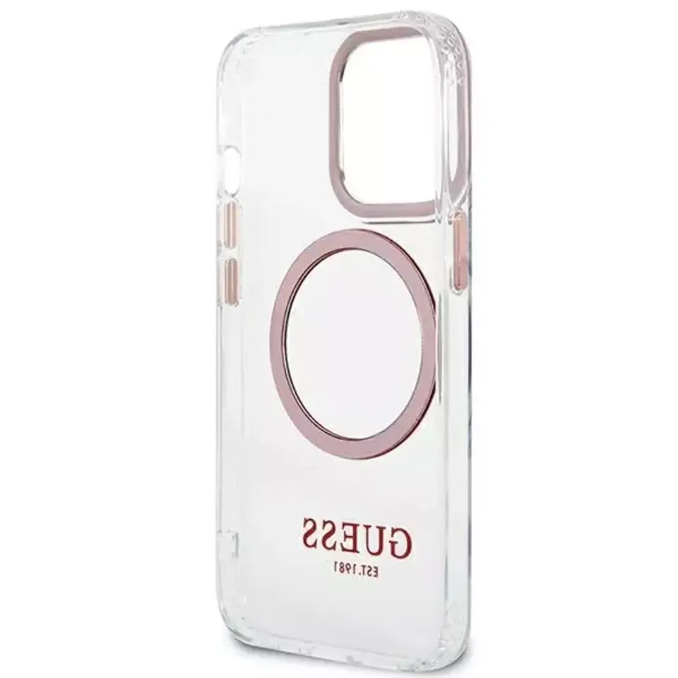 The case perfectly emphasizes the unique design of your iPhone, it has been decorated with silver elements such as a frame around the lenses, buttons and the Guess logo. The case features a magnetic ring compatible with the MagSafe wireless charger for quick and easy charging. The magnetic ring blends perfectly with the color scheme of the cover.