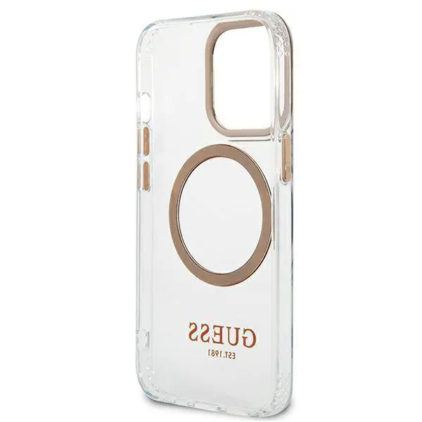 The case perfectly emphasizes the unique design of your iPhone, it has been decorated with gold elements such as a frame around the lenses, buttons and the Guess logo. The case features a magnetic ring compatible with the MagSafe wireless charger for quick and easy charging. The magnetic ring blends perfectly with the color scheme of the cover.