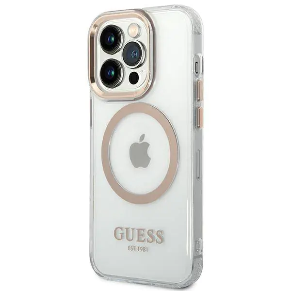 The case perfectly emphasizes the unique design of your iPhone, it has been decorated with gold elements such as a frame around the lenses, buttons and the Guess logo. The case features a magnetic ring compatible with the MagSafe wireless charger for quick and easy charging. The magnetic ring blends perfectly with the color scheme of the cover.