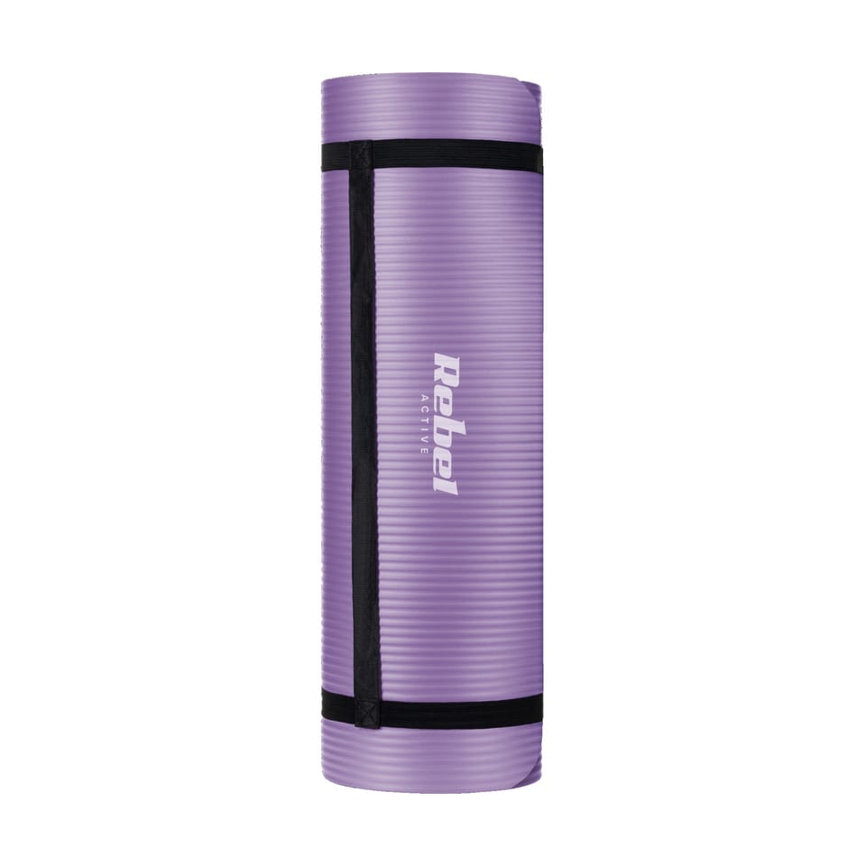 Gym mat for yoga, pilates, fitness, 183x61cm, thickness 1.5cm, NBR material, purple, REBEL ACTIVE