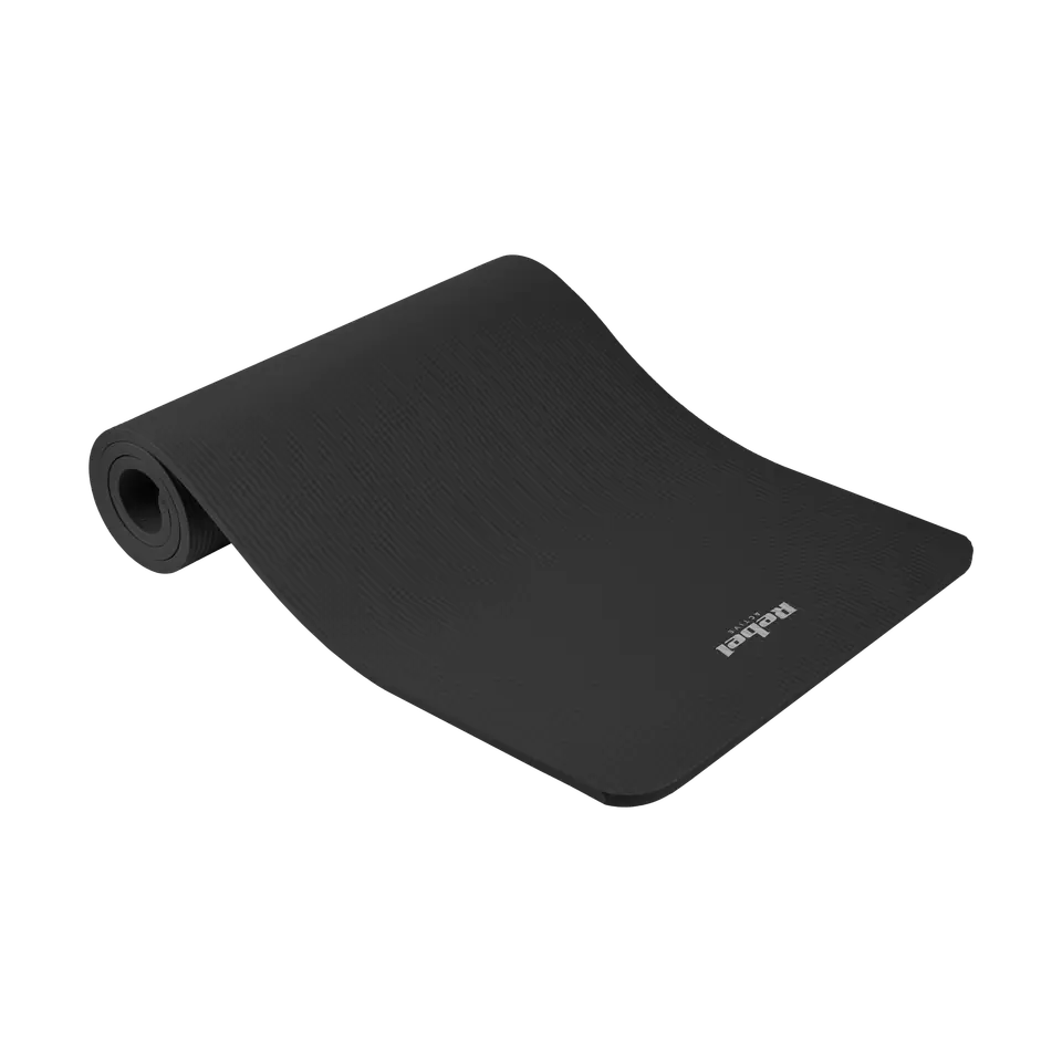 Gymnastic mat for yoga, pilates, fitness, 183x61cm, thickness 1.5cm, NBR material, black, REBEL ACTIVE