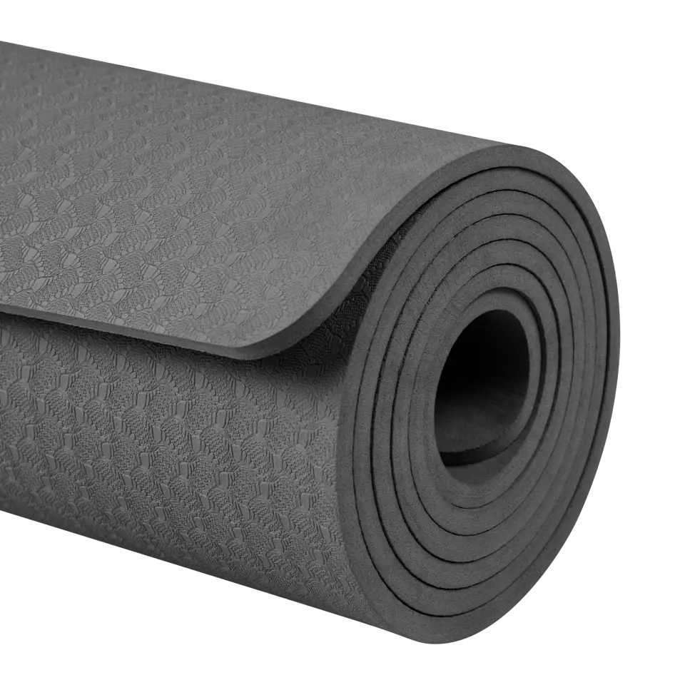 Gymnastic mat for yoga, pilates, fitness, 183x61cm, thickness 6mm, TPE material, black, REBEL ACTIVE