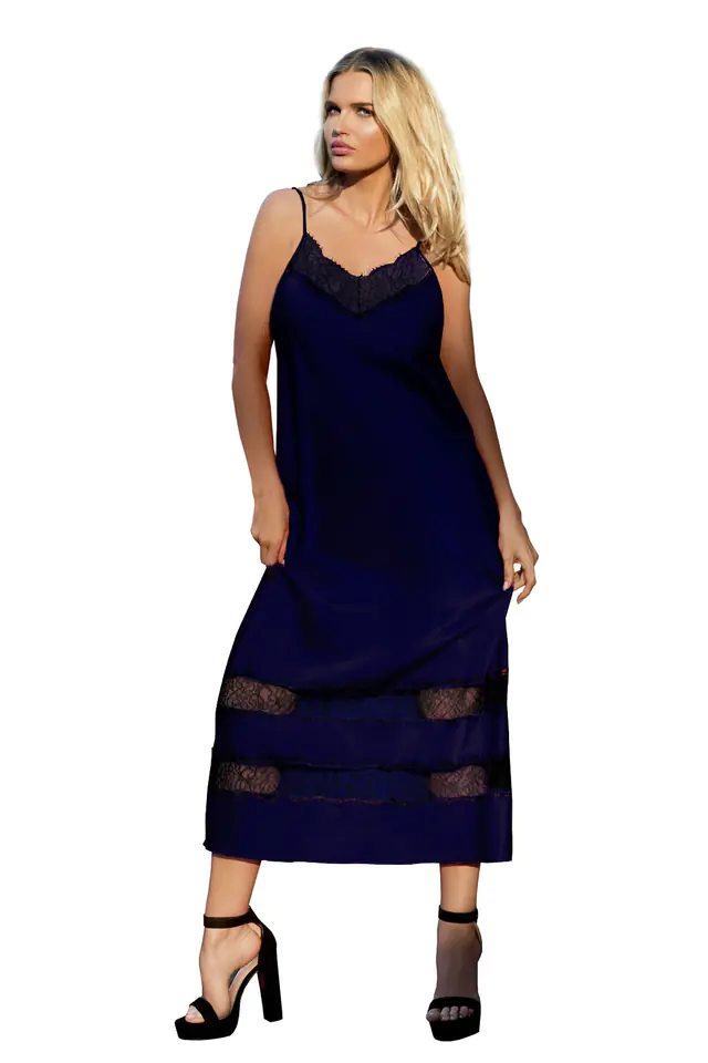 GUSTOWNA KOSZULKA NOCNA WYKONANA Z WZIEWNEJ, DELIKATNEJ DLA CIAŁA SATYNY. REGULOWANE RAMIĄCZKA DZIĘKI KTÓRYM MOŻNA UZYSKAĆ ODPOWIEDNIO ODKRYTY DEKOLT. KORONKOWE ZDOBIENIA DODAJĄ ELEGANCJI.