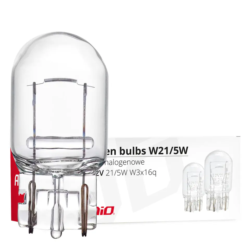 Application: stop lights, front position reversing lights, daylight turn signals, rear fog type W21W Voltage 12V Rated power 21W Base: T20 W3x16d UV filter Yes Package 10pcs.