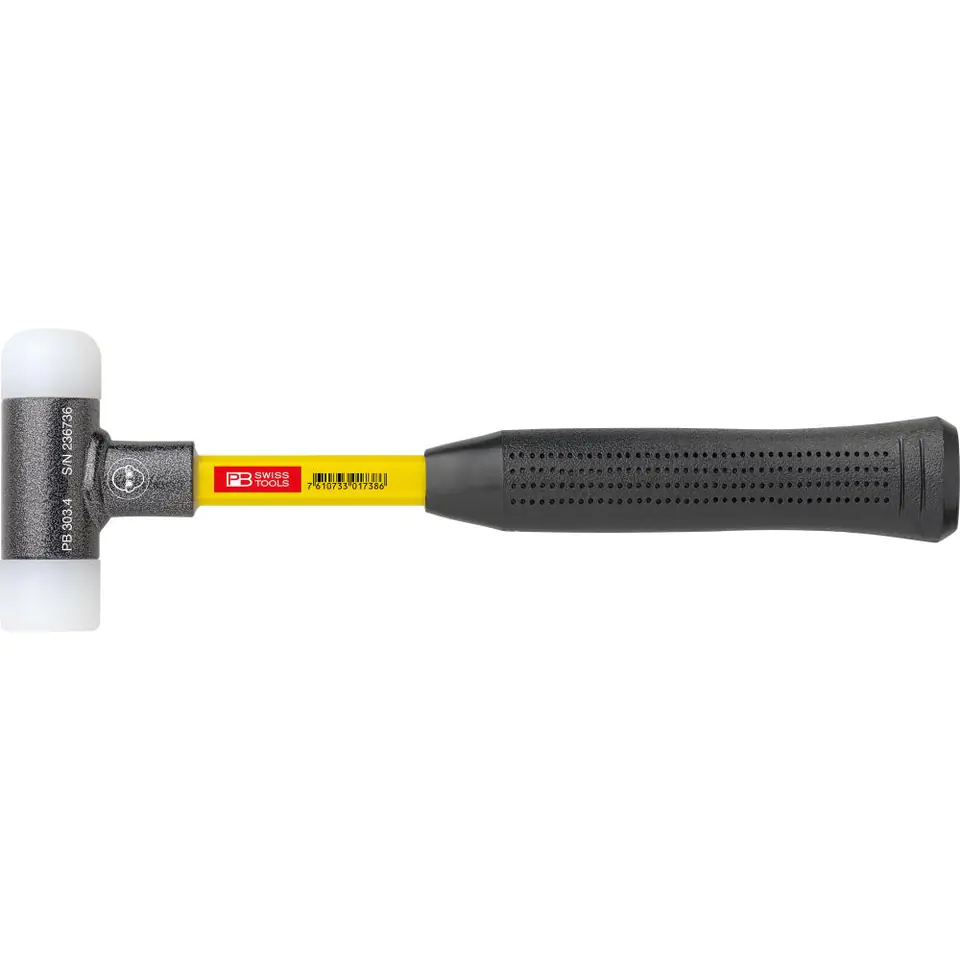 With permanently connected glass fiber reinforced handle and ergonomically shaped rubber handle.