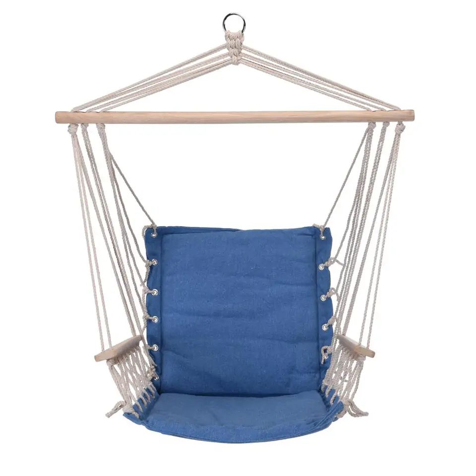 Elegant hammock chair, used to hang anywhere. Using the chair is a great way to relax every day. A strong wooden frame, a soft seat filled with a sponge and wooden armrests ensure maximum comfort. A wooden, transverse bar prevents the seat from pulling inwards. The hammock is the perfect complement to the décor of a terrace or room.